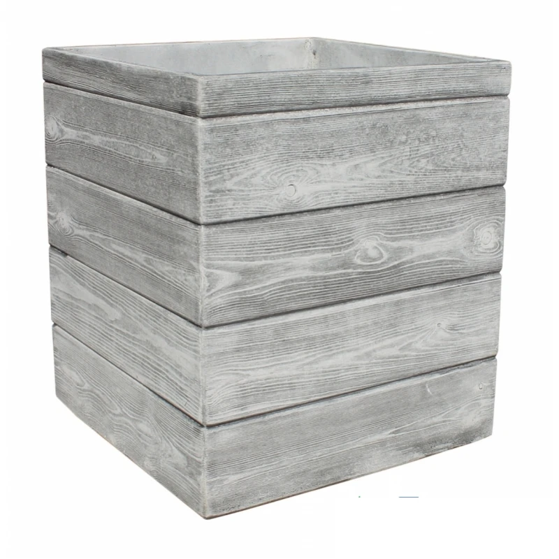 Macetero imitación madera, fabricada en hormigón. Altamente resistentes a las inclemencias del tiempo. De estilo clásico, nunca pasan de moda y quedan ideales en cualquier jardín. Diferentes colores a elegir. Con posibilidad de añadir ruedas para desplazar cómodamente.