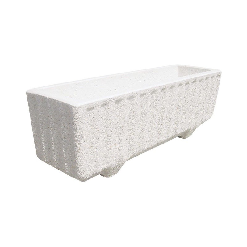 Jardinera rectangular granito "china lavada" y cantos pulidos. Con patas incorporadas en el propio diseño. Es ideal para plantar flores de temporada y otras. Resistencia máxima a la intemperie. Color granito blanco.