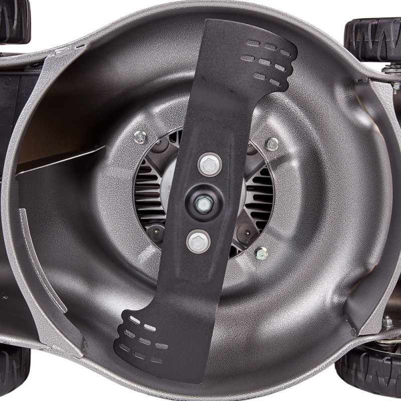 La carcasa del cortacésped Honda HRG416XB es de acero, robusta, redondeada y con tratamiento anticorrosión. Fácil de limpiar. Su exclusivo diseño redondeado con ventilación trasera, consistente en un sistema patentado de ranuras en la carcasa y ángulo del chasis respecto al suelo, ayuda a mejorar la calidad de recogida del césped.