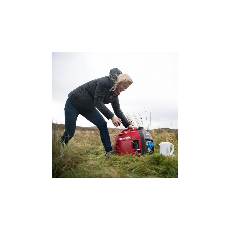 El generador Honda EU22i es fácil de mover y transportar y está repleto de características atractivas para una gran variedad de usuarios. Su peso ligero y su facilidad de arranque, incluso después de meses de almacenamiento, aseguran una configuración y uso sencillos para actividades tales como acampar y disfrutar de las comodidades del hogar, como secadoras de cabello, televisión y ordenadores en lugares remotos. El funcionamiento ultra silencioso lo hace discreto y adecuado para su uso en campings sin molestar a los vecinos cercanos.