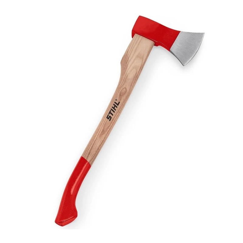 Hacha de corte clásica con mango de nogal americano y funda de protección contra impactos y y con casquillo protector. Gracias a su cabeza cónica se necesita menos esfuerzo para trabajar. Cabezal en forma de cuña