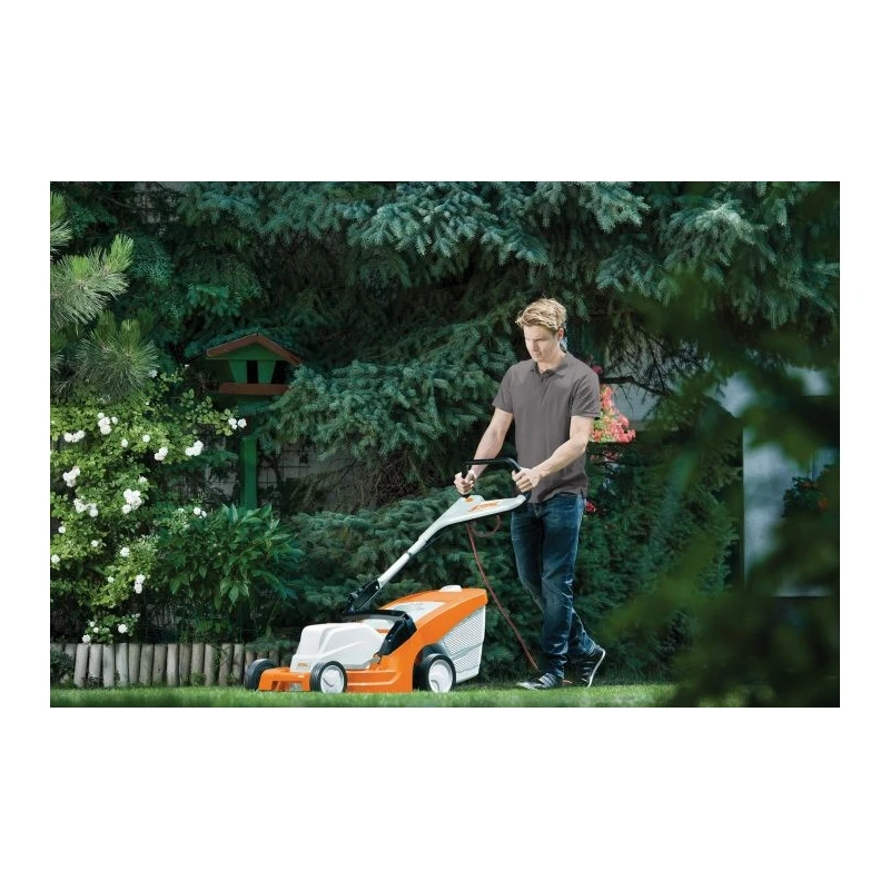 Potente cortacésped eléctrico con ancho de corte de 41 cm para superficies pequeñas y medianas.