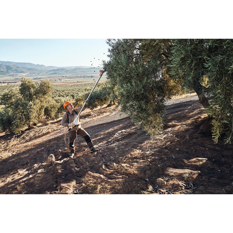 El vareador SPA 130 funciona con baterías de litio-ión del sistema STIHL AP (AP 500 S) es silencioso y libre de emisiones.