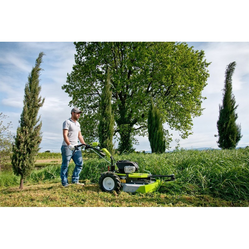 La desbrozadora profesional Grillo CL 62 proporciona un corte de hierbas altas y malezas rápido y eficaz debido a su gran maniobrabilidad. Ideal para el mantenimiento de los espacios verdes en agricultura, para desbrozar hierba en los frutales y olivares Con la CL 62 el trabajo en terrenos irregulares y/o en pendientes incluso con obstáculos no representan un problema ya que la perfecta distribución del peso y sus adecuados neumáticos son garantía de una adecuada adherencia. Ruedas tractor y rueda delantera maciza a prueba de pinchazos. Regulación de altura de corte progresiva por manivela.
