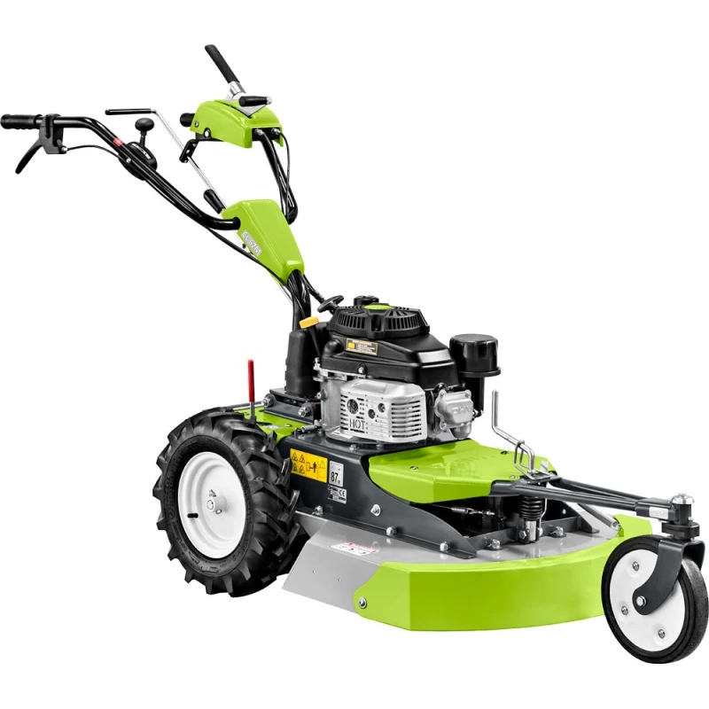 El corte de hierba alta y arbustos es rápido y eficaz gracias a la manejabilidad de esta desbrozadora hidrostática. En los terrenos irregulares y con cualquier tipo de obstáculo ofrece óptimas prestaciones. Una perfecta distribución del peso así como los neumáticos con perfil “TRACTOR” aseguran un alto nivel de adherencia en cualquier condición. Ideal para el mantenimiento de los espacios verdes y en agricultura para desbrozar la hierba en los frutales y olivares. En pendientes o en caso de corte transversal. Está equipada con cuchillas con extremidades flotantes anti-choques que aseguran un buen efecto mulching.