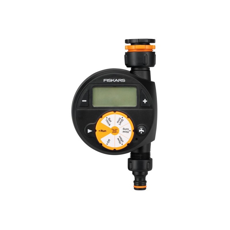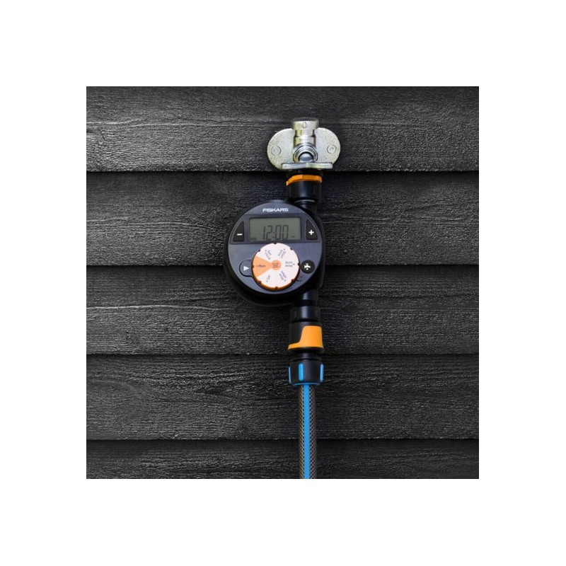 Permite programar el temporizador para utilizar dos mangueras de forma independiente o simultánea. Fácil programación de la frecuencia, la duración y las horas de inicio y parada de riego. El botón de riego...