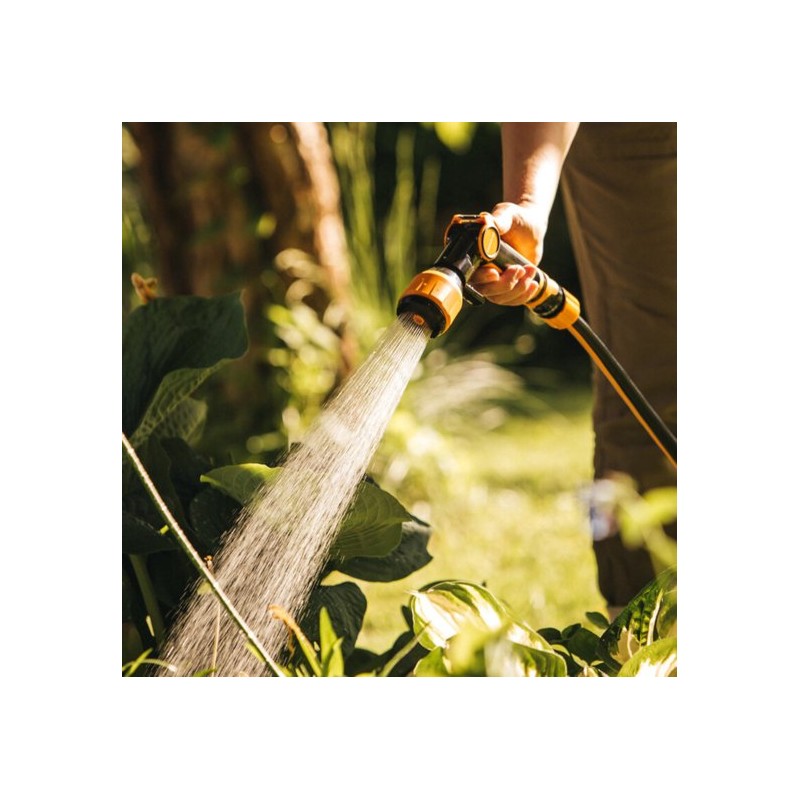 Permite programar el temporizador para utilizar dos mangueras de forma independiente o simultánea. Fácil programación de la frecuencia, la duración y las horas de inicio y parada de riego. El botón de riego...