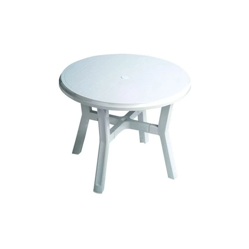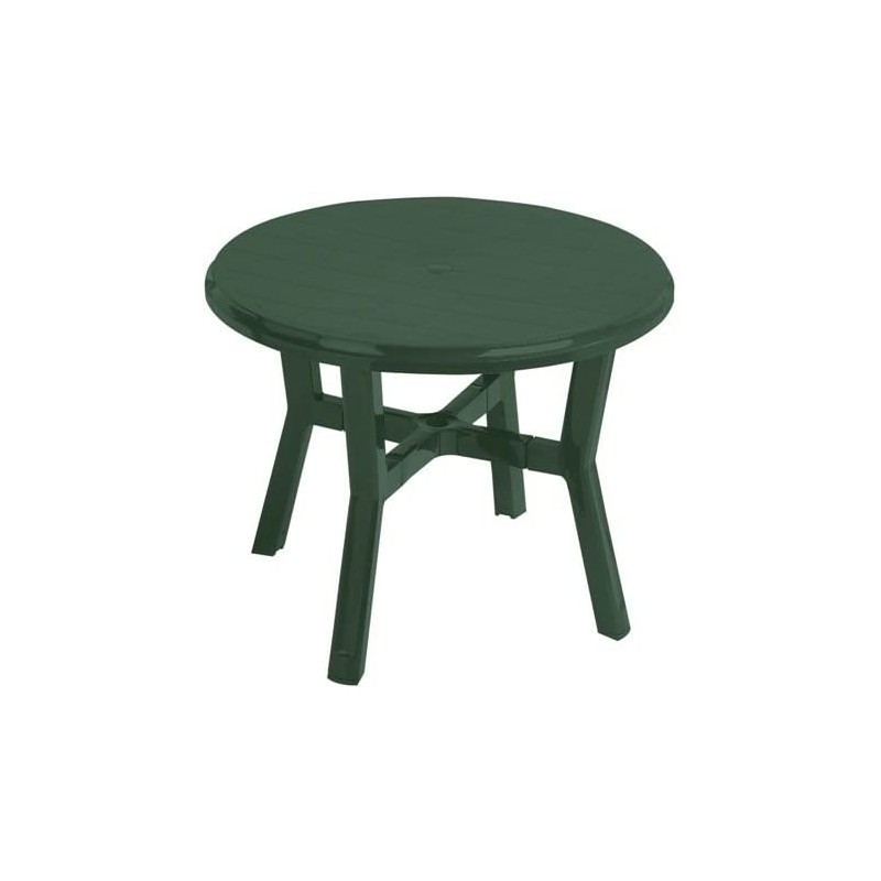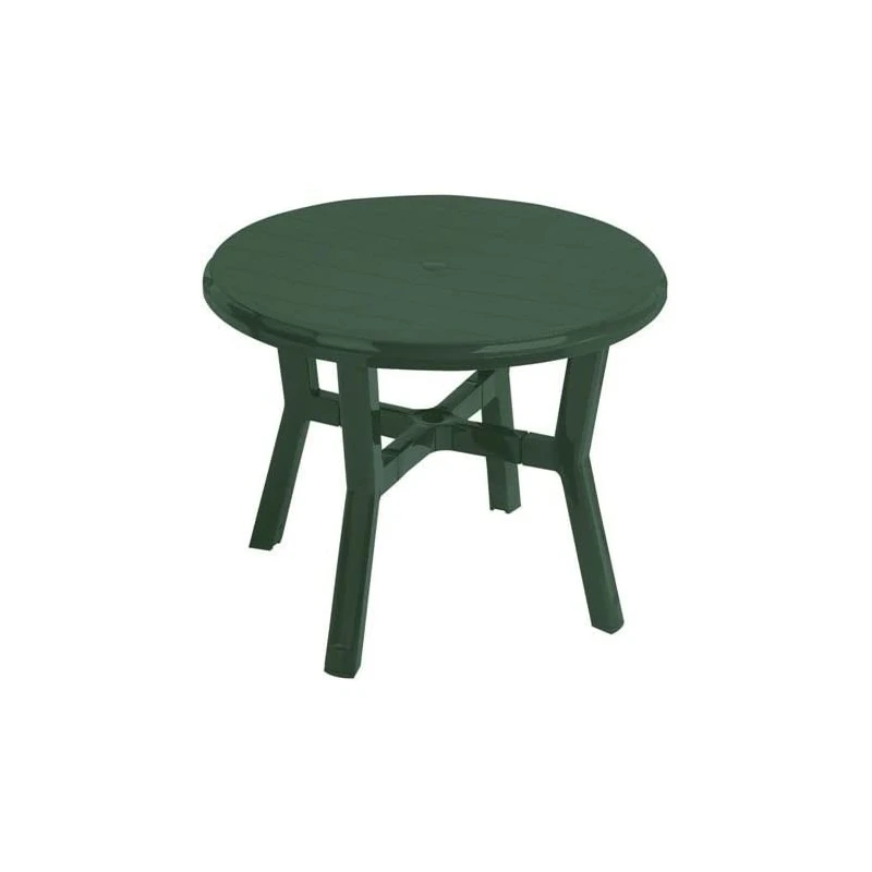 Conjunto de comedor fabricado en hormigón con alta durabilidad, preparado para el uso en exterior. Compuesto por 1 mesa redonda y 3 bancos curvos con respaldo. Azulejo Vulcan, piedra color gris.