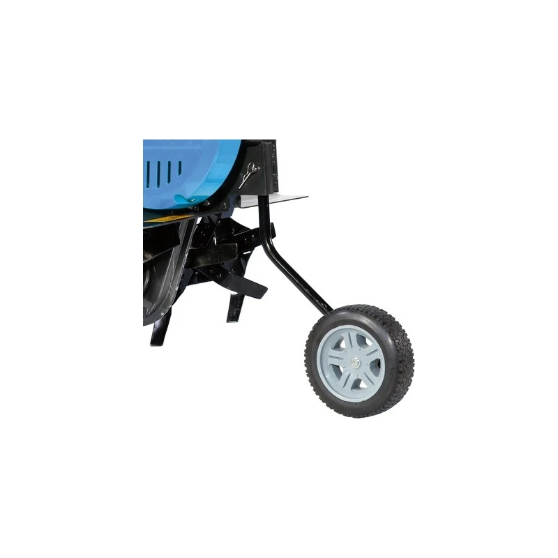 Manillar ajustable verticalmente en tres posiciones para adaptarse a la altura del operador. Rueda trasera para transportar la máquina.