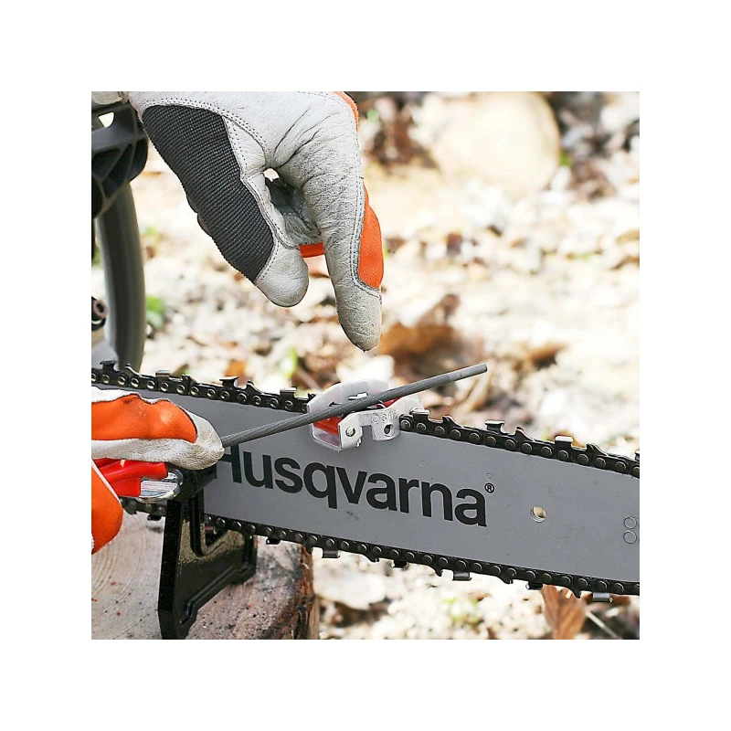 Sistema de bloqueo de limado patentado. Para lima redonda 4.0-4.5 mm y lima plana 6 pulgadas y 8 pulgadas. Guías de 25˚ y 30˚ aseguran un ángulo correcto de limado.