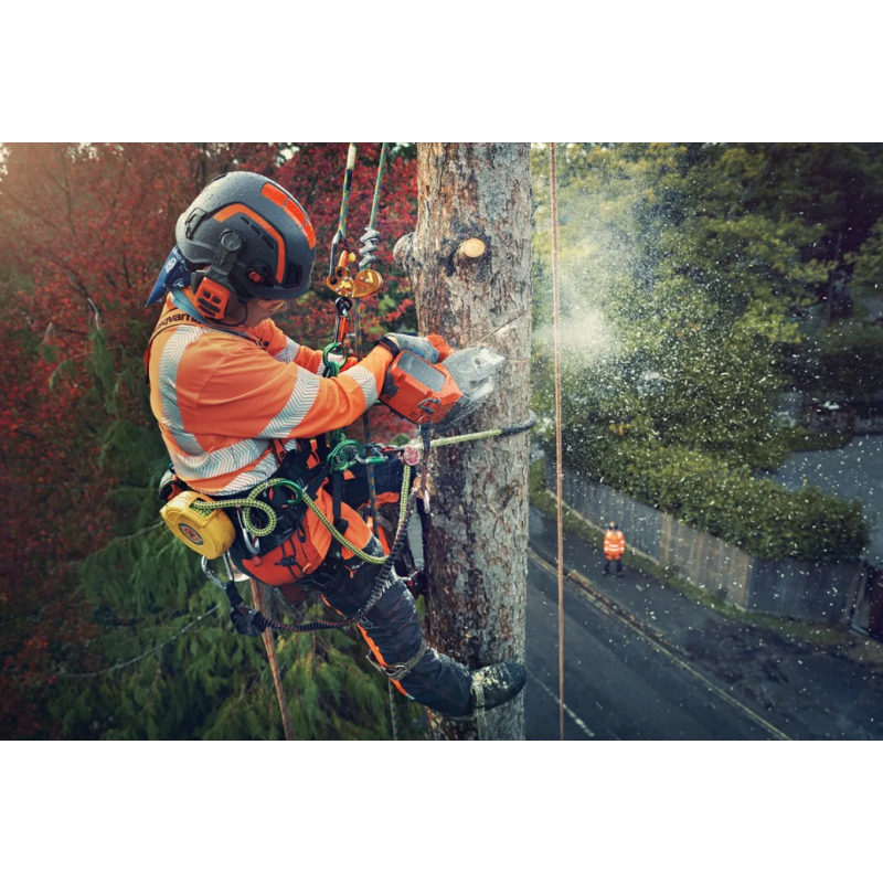 Vista sin obstáculos: el diseño del agarre garantiza una visión total del árbol en el que se está trabajando y del terreno, permitiendo así cortes más precisos y evitando cualquier riesgo de accidente.