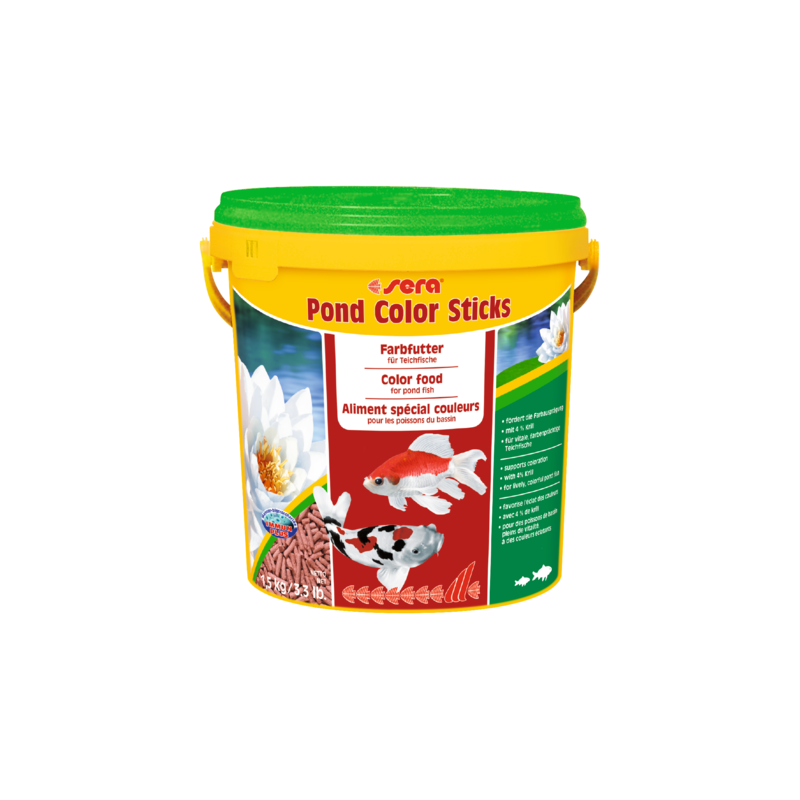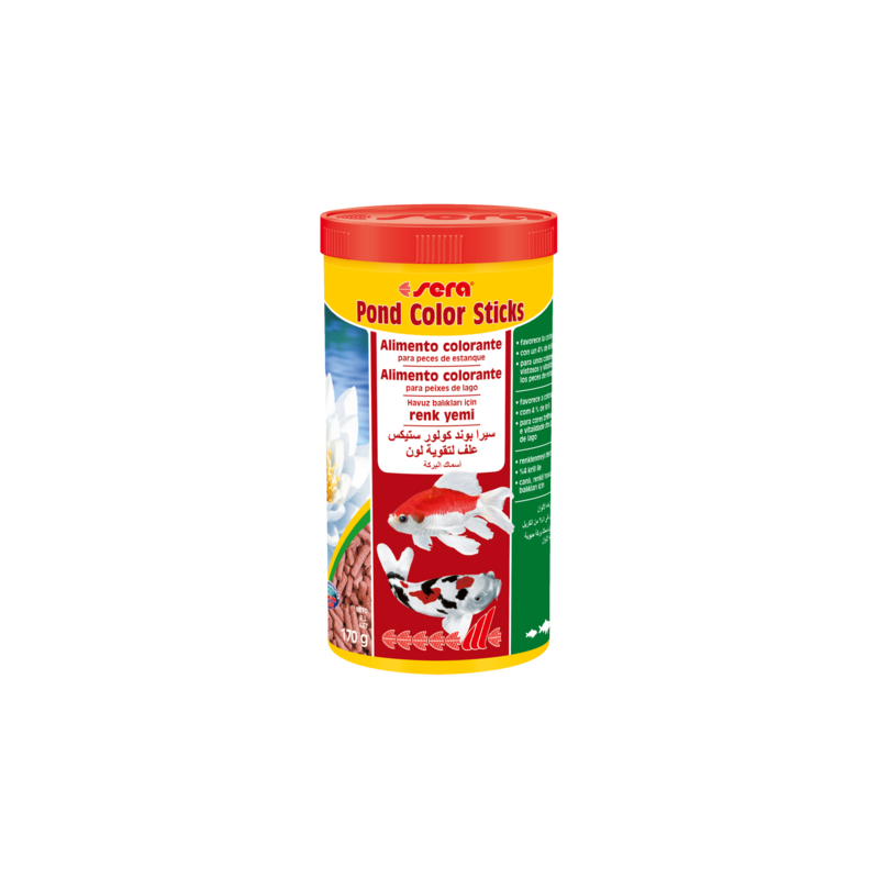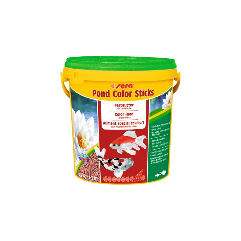 Sera Pond Color Sticks es el alimento colorante para peces del estanque, que se compone de granulado cuidadosamente elaborado.