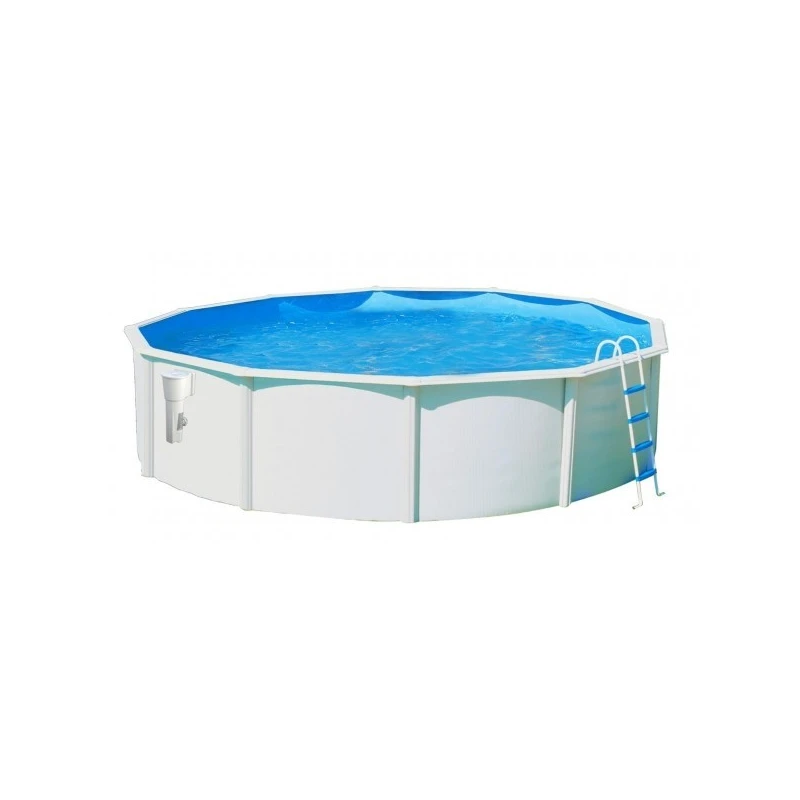 Piscina circular, diseñada con columnas para que la piscina sea más robusta. Galvanizada 350x120cm. Filtro arena monobloc. Skimmer + mangueras. Escalera lacada. Depuradora: Filtro de cartucho 3.000. Estructura de acero lacado espesor 38/100. Sencilla de instalar.