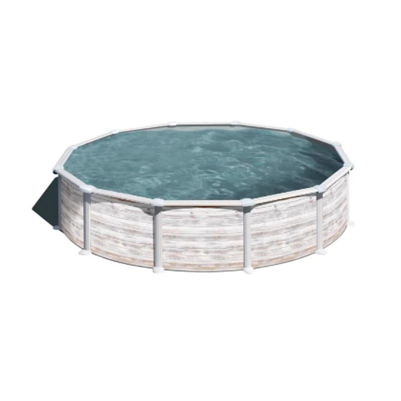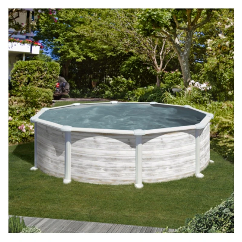 Piscina desmontable de acero blanco envejecido en forma redonda, con filtro de arena. Puede instalarse fácilmente sin necesidad de realizar trabajos de excavación. Este modelo de piscina se acopla a cualquier lugar y...