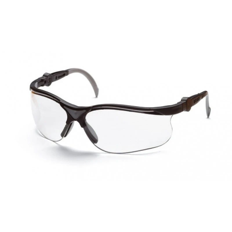 Gafas protectoras con cristales claros y resistentes a las rayaduras. Se pueden ajustar en ángulo y en longitud de patilla. Cumple las normas EN 166, ANSI Z87+.