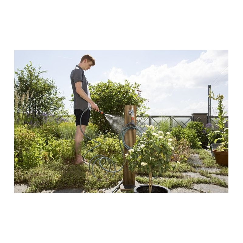 Kit con soporte y manguera.Para el almacenamiento de la manguera, simplemente se enrolla alrededor del soporte portamangueras y siempre está lista para su uso. Existen opciones prácticas para colgar las boquillas,...