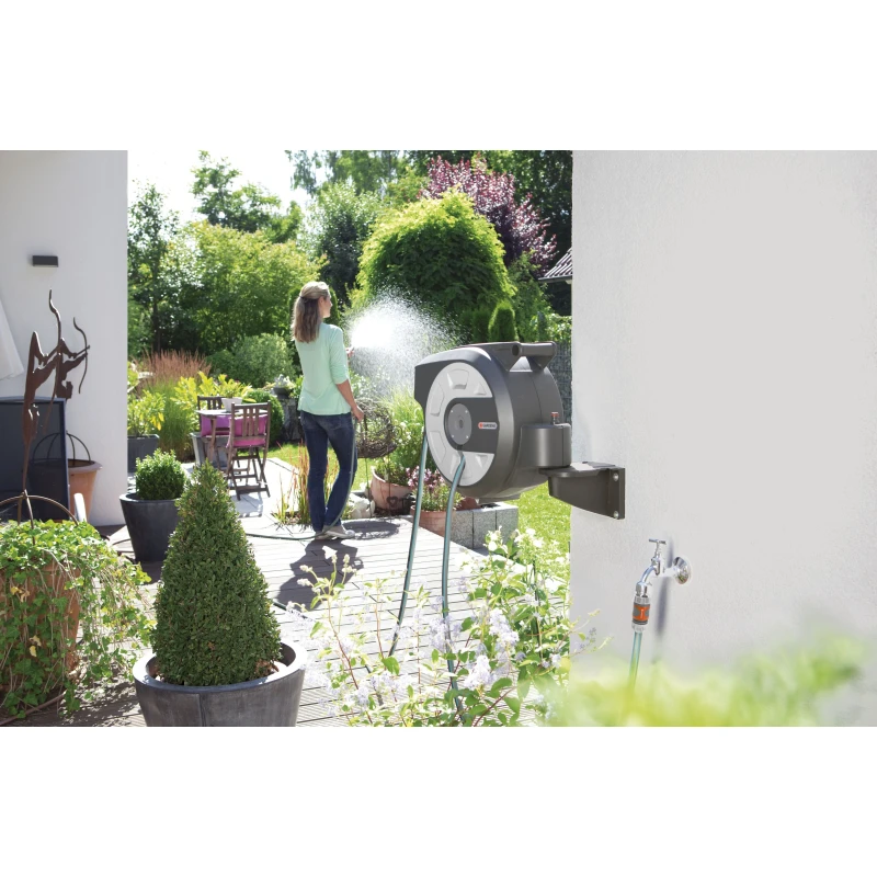 Box de pared compacto de manguera para pequeños jardines y terrazas.