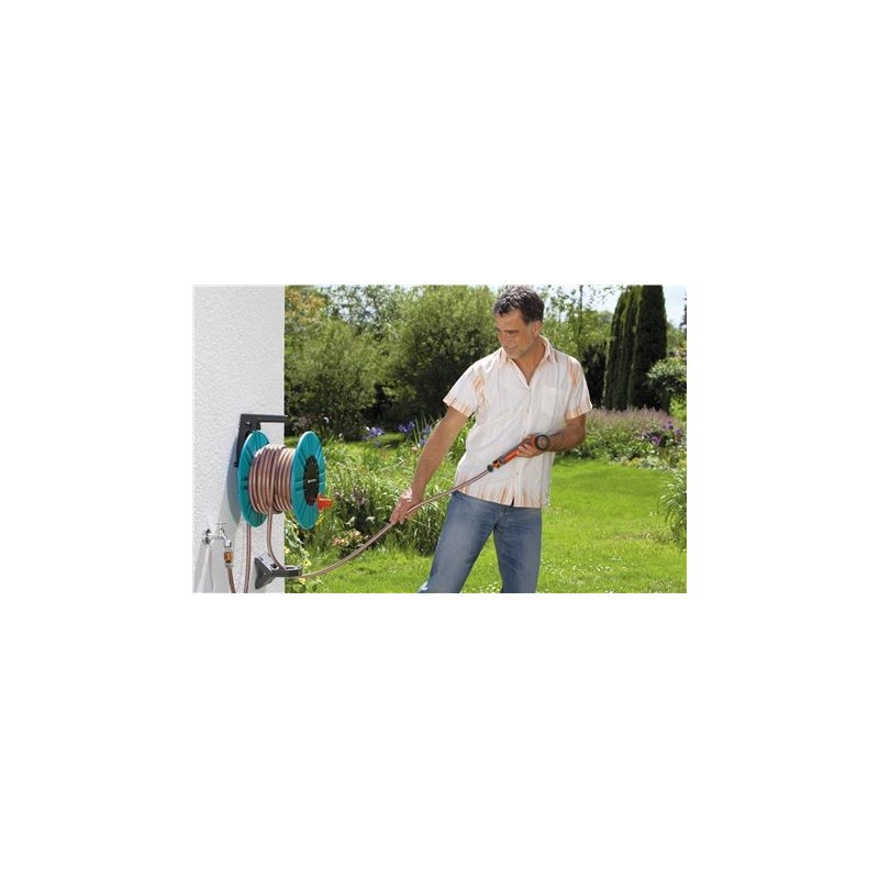 El pequeño ayudanteSoporte mural para manguera sirve para el almacenamiento de la manguera del jardín en la pared. La manguera puede guardar de manera fácil y rápida. Hay opciones prácticas para colgar boquillas,...