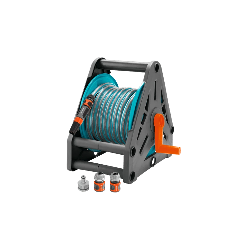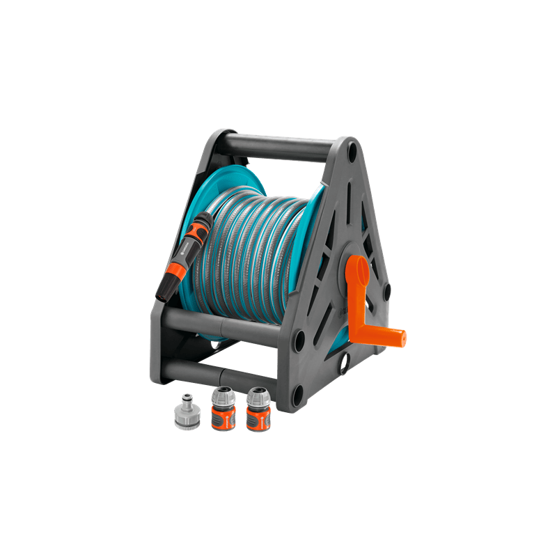Carro portamangueras de fácil manejo.El Gardena AquaRoll M. Te ayuda a ahorrar espacio de almacenamiento de la manguera y es muy fácil de usar. Posee una manivela ergonómica con componentes de plástico blando para...