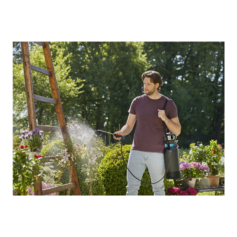 Con el Pulverizador a Presión 5 l Comfort de GARDENA estará bien equipado para diversas tareas de cuidado de plantas en su jardín. Úselo para tratar con precisión sus flores, arbustos o incluso árboles, ya sea para riego por aspersión, fertilización o protección de plantas, de forma química u orgánica.
