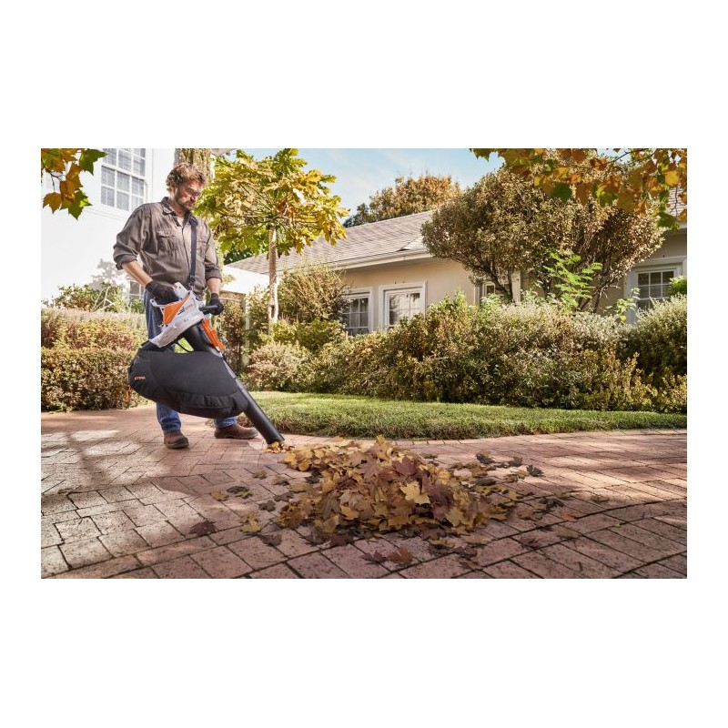 El primer picador/aspirador de batería de la gama de STIHL. Puede usarse tanto para aspirar hojas y triturarlas, como para soplar hojas o papel.