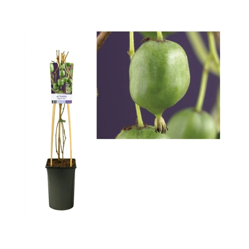 Esta trepadora de la familia del Kiwi. Su hoja es caduca y grande, en la primavera, su floración perfumada, aromatizara su jardín. Sigue una abundante producción de pequeños frutos, con la piel lisa y la carne dulce. Estos pequeños frutos que podemos cosechar en otoño, contienen vitamina C, incluso un pie aislado prodrà producir frutos.